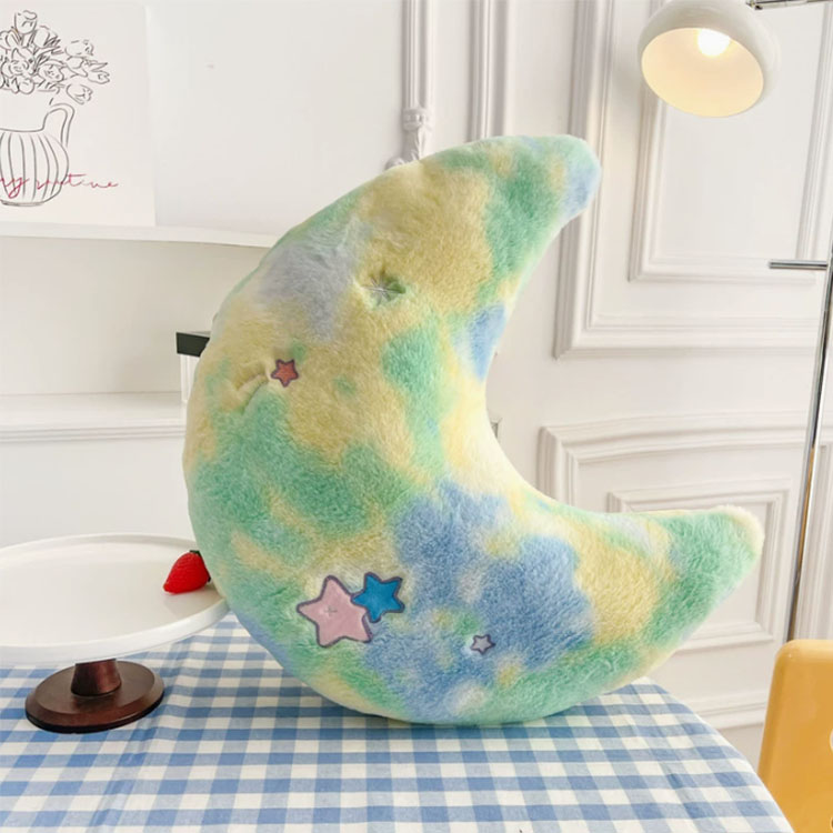 Điểm nổi bật lớn nhất của chiếc gối hình mặt trăng này là chất liệu vải đều được nhuộm tie-dye chứ không chỉ đơn thuần một màu. Ví dụ: bề mặt màu xanh lá cây được tạo điểm nhấn bằng màu vàng và xanh lam, trong khi bề mặt màu xanh lam được tạo điểm nhấn bằng màu trắng và tím, v.v. Điều này làm cho nó thực sự bắt mắt.
