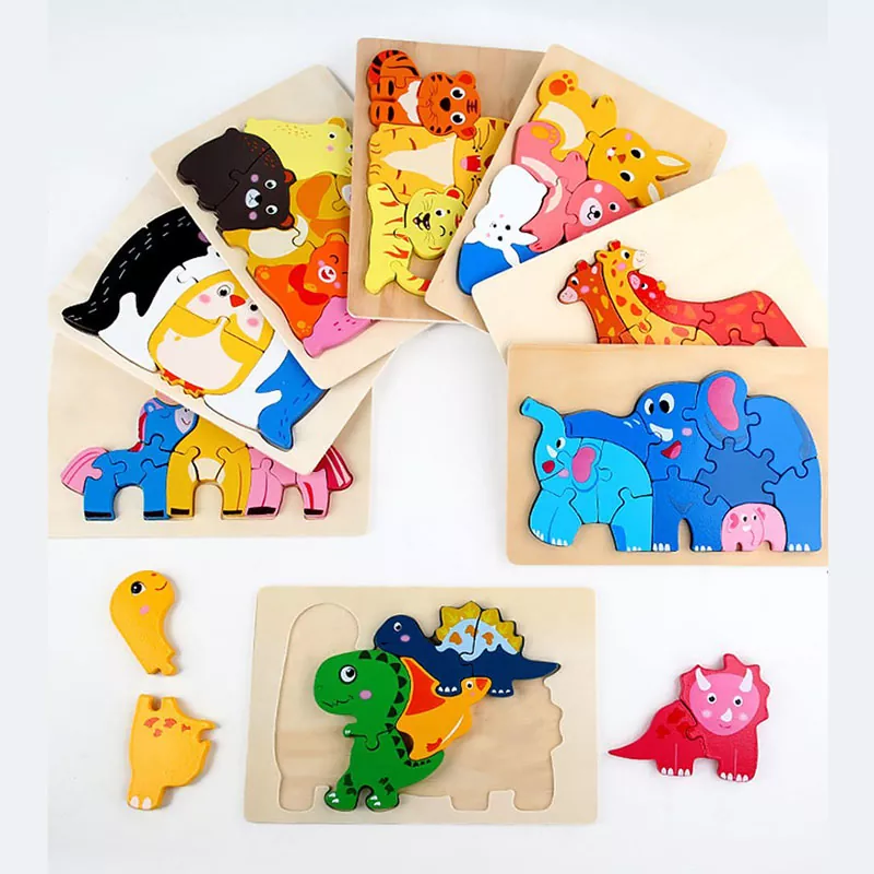 Câu đố ghép hình động vật hoạt hình giáo dục bằng gỗ dành cho trẻ em