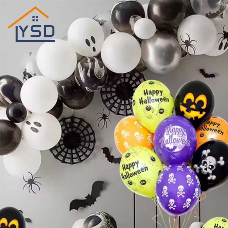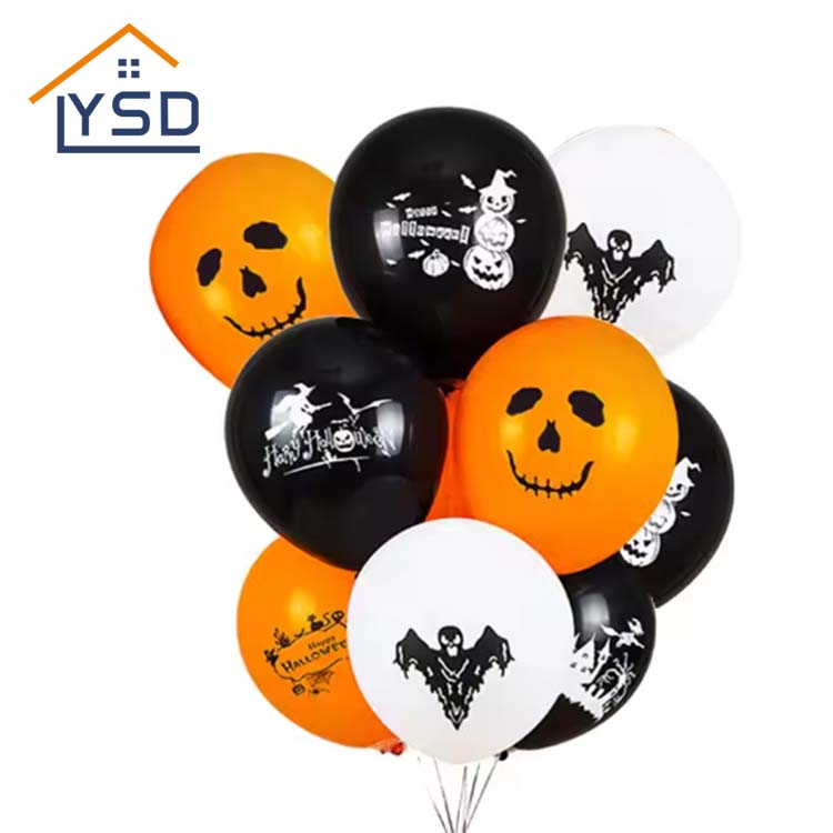 Bong bóng cao su Halloween có sẵn màu đen, trắng, cam và các màu khác phù hợp với Halloween. Chúng được làm bằng mủ tự nhiên. Chúng chủ yếu được sử dụng để trang trí các bữa tiệc Halloween và tăng bầu không khí lễ hội. YSD là một nhà máy chuyên sản xuất các nguồn cung cấp của đảng. Các vật liệu được sử dụng trong sản xuất bóng bay đều phù hợp với các tiêu chuẩn.
