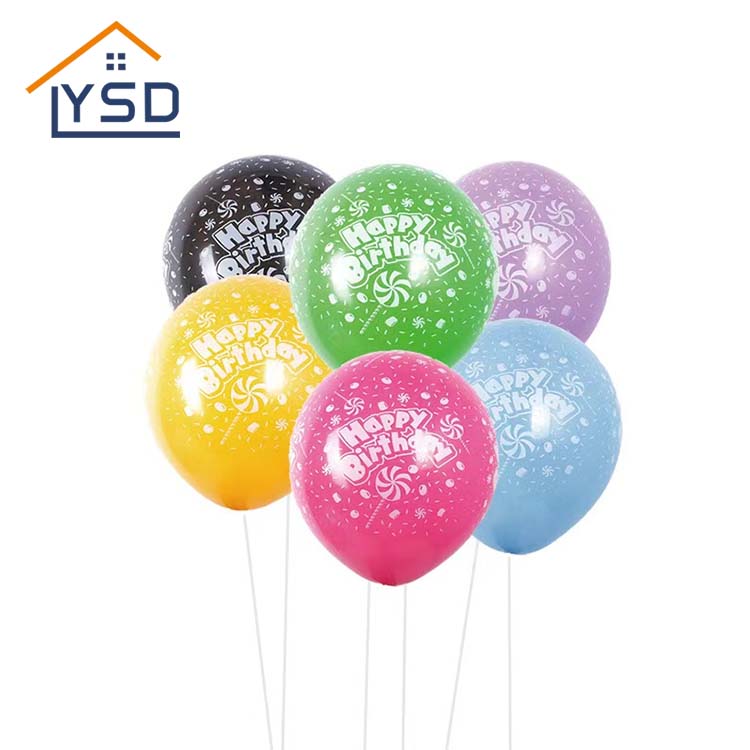 Chúc mừng sinh nhật in bóng cao su là bóng bay với văn bản chúc mừng sinh nhật hoặc các yếu tố liên quan đến sinh nhật khác được in trên chúng. Bong bóng cao su được sản xuất bởi YSD® đáp ứng các tiêu chuẩn liên quan và tập trung vào bảo vệ môi trường.