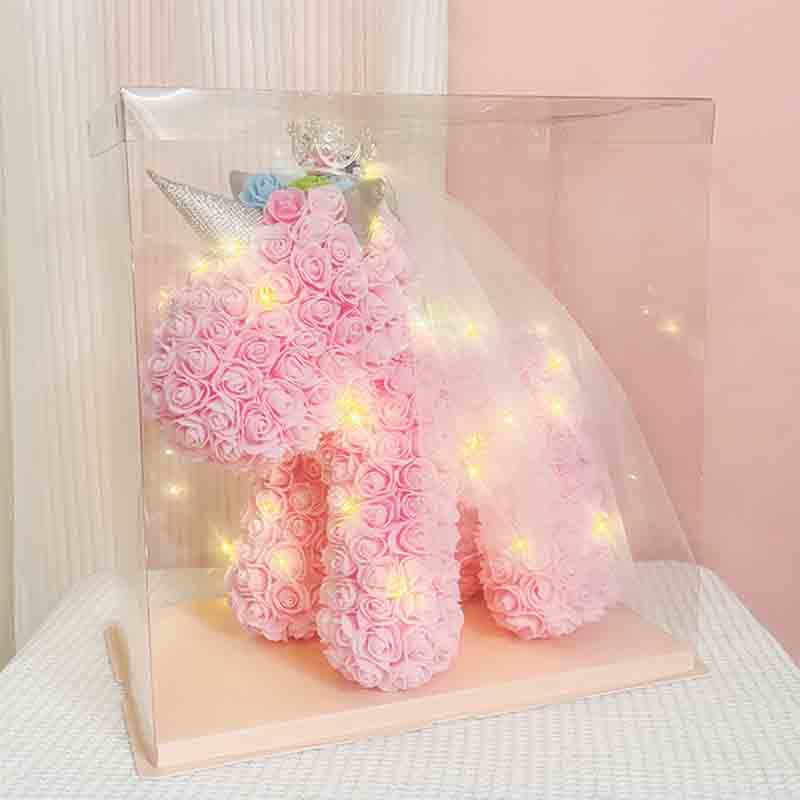 Để đáp ứng các yêu cầu không gian của các kịch bản khác nhau, Rose Unicorn cung cấp hai kích thước chính cho khách hàng lựa chọn. Mô hình 25 cm là tinh tế và sang trọng, phù hợp như một trung tâm bàn, tô điểm bàn tráng miệng hoặc phụ kiện bắt mắt cho đồ lưu niệm, ánh sáng và linh hoạt. Mô hình 40 cm đầy động lực và là một lựa chọn lý tưởng để tạo tiêu điểm tường nền ảnh, một trung tâm trực quan ở lối vào được chào đón hoặc trang trí sân khấu chính, với cảm giác hiện diện mạnh mẽ hơn. Cả hai thông số kỹ thuật đều duy trì cùng một nghề thủ công tinh tế và các đặc điểm bền của hoa hồng PE.