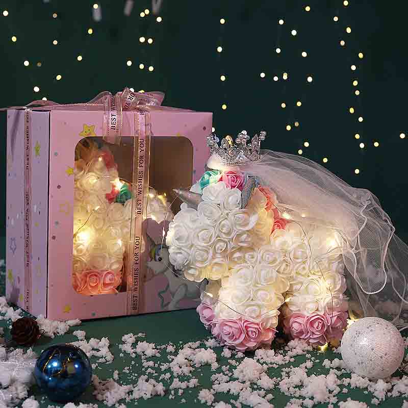 Rose Unicorn khéo léo kết hợp hình dạng kỳ lân mơ mộng với yếu tố hoa hồng tượng trưng cho sự lãng mạn để tạo ra một lõi trang trí với tác động thị giác tuyệt vời. Nó không phải là một tiêu thụ dùng một lần. Điểm nổi bật cốt lõi của nó là hoa hồng cẩn thận làm bằng vật liệu PE đặc biệt. Thuộc tính vật chất này xác định rằng các cánh hoa có màu linh hoạt, có màu sáng và có sự ổn định vật lý tuyệt vời. Chúng có thể chống lại ảnh hưởng của ánh sáng và độ ẩm một cách hiệu quả trong môi trường hàng ngày, và không dễ bị giẫm đạp, mờ dần hoặc biến dạng. Các vấn đề đảm bảo rằng tư thế đẹp của nó có thể được duy trì trong một thời gian dài và chịu được việc sử dụng và lưu trữ lặp đi lặp lại.