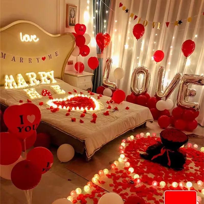 Bộ bóng bay Valentine có một loạt các kịch bản ứng dụng. Nếu bạn đang chuẩn bị cho một lời cầu hôn lãng mạn, hãy sắp xếp bóng bay thành hình trái tim và đặt một chiếc nhẫn ở giữa. Khi người yêu của bạn bước vào không gian đầy bóng bay, sự ngạc nhiên và cảm động sẽ phát sinh một cách tự nhiên; Đối với bữa tối ngày lễ tình nhân, sắp xếp bóng bay quanh bàn để tăng cường không khí ăn uống ngay lập tức; Nếu bạn muốn tạo ra một thế giới ấm áp và lãng mạn cho hai người ở nhà, hãy trang trí căn phòng bằng bóng bay để để tình yêu thấm vào mọi góc. Ngoài ra, nó cũng phù hợp cho các nhà hàng, phòng khách sạn và những nơi khác nơi các cặp vợ chồng hẹn hò, thêm nhiều sự lãng mạn cho Ngày Valentine.